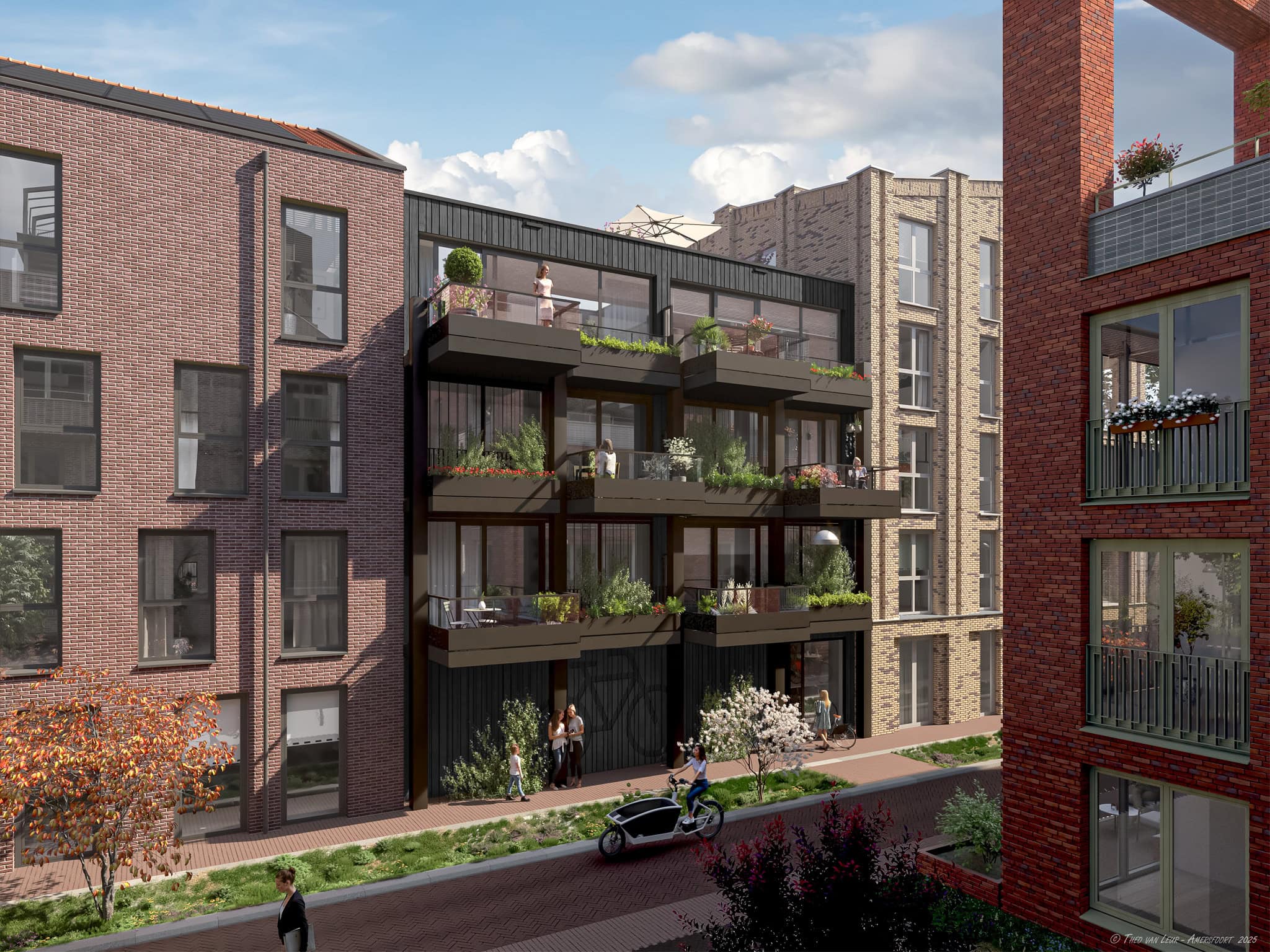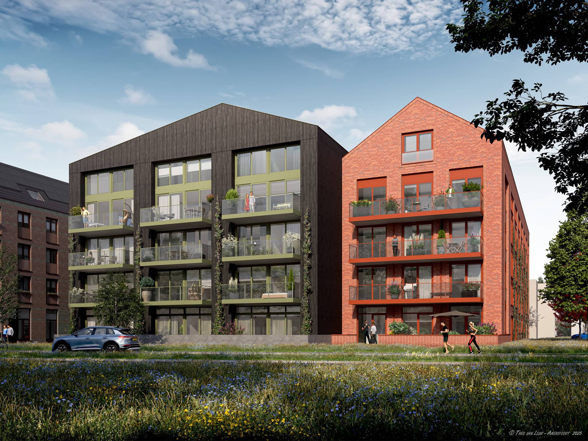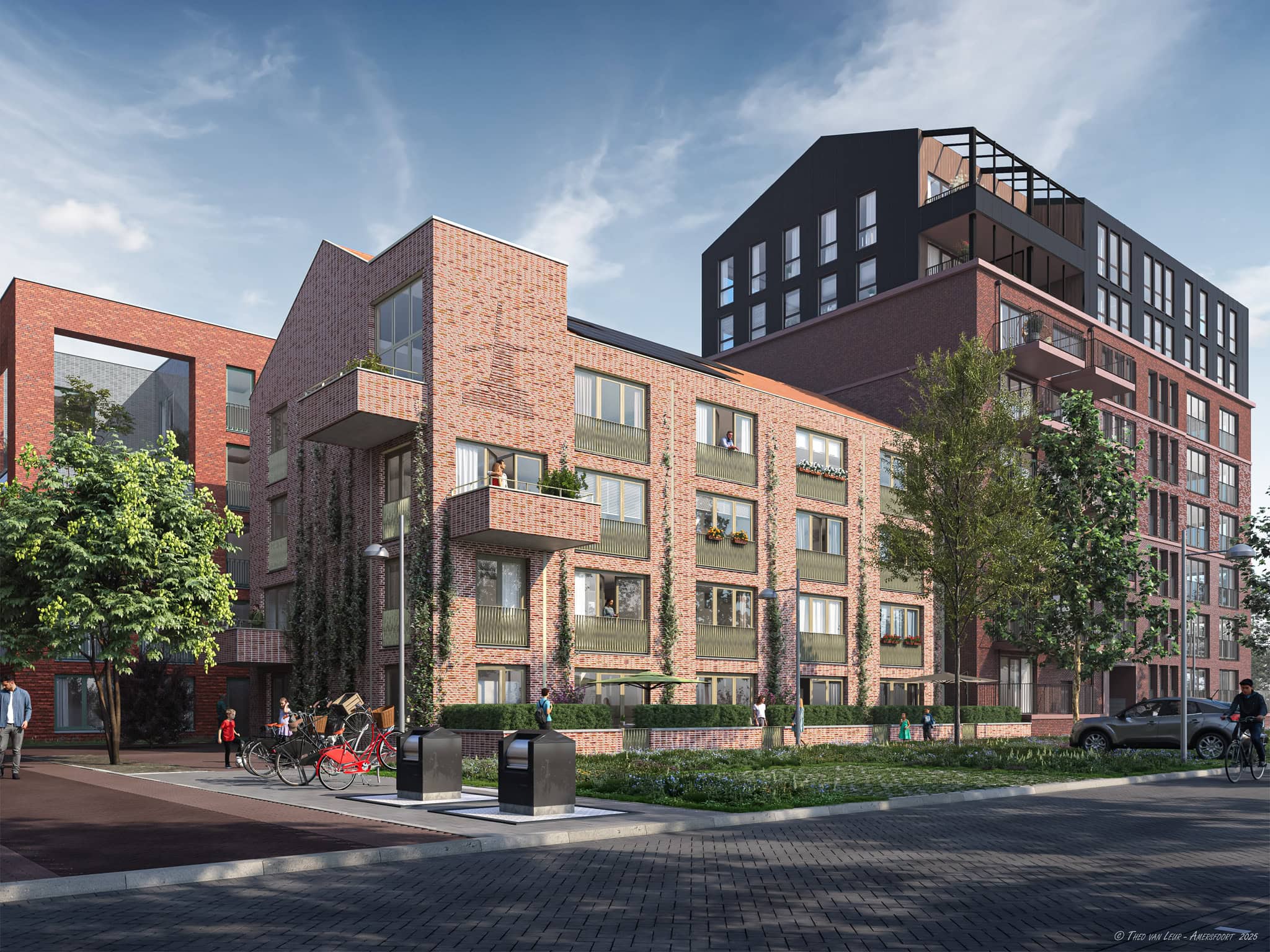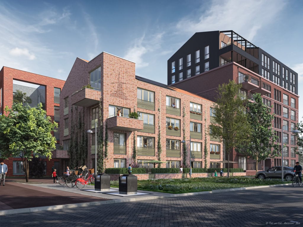 Alle woningen worden aangesloten op het wijk warmte- en koelingsnet. In/onder de binnentuinen zijn voorzieningen voor waterberging aanwezig.
